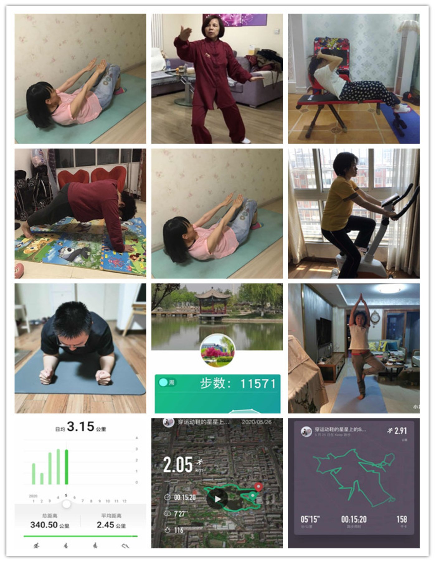 本次线上活动以健身项目为主,设立了平板支撑、仰卧起坐、俯卧撑、踢毽子、跳绳等适合在家进行的运动项目,参赛者按照比赛要求拍摄并上传参赛照片或视频。通知发出以来,老师们积极参与,共收到二十多张照片。本次疫情期间线上运动会,充分的调动了大家的运动热情,促进了体能不断提升,增强了大家的凝聚力。为在疫情期间让老师们养成居家运动良好习惯、增强身体素质,梳理抗疫信心打下了坚实的基础。