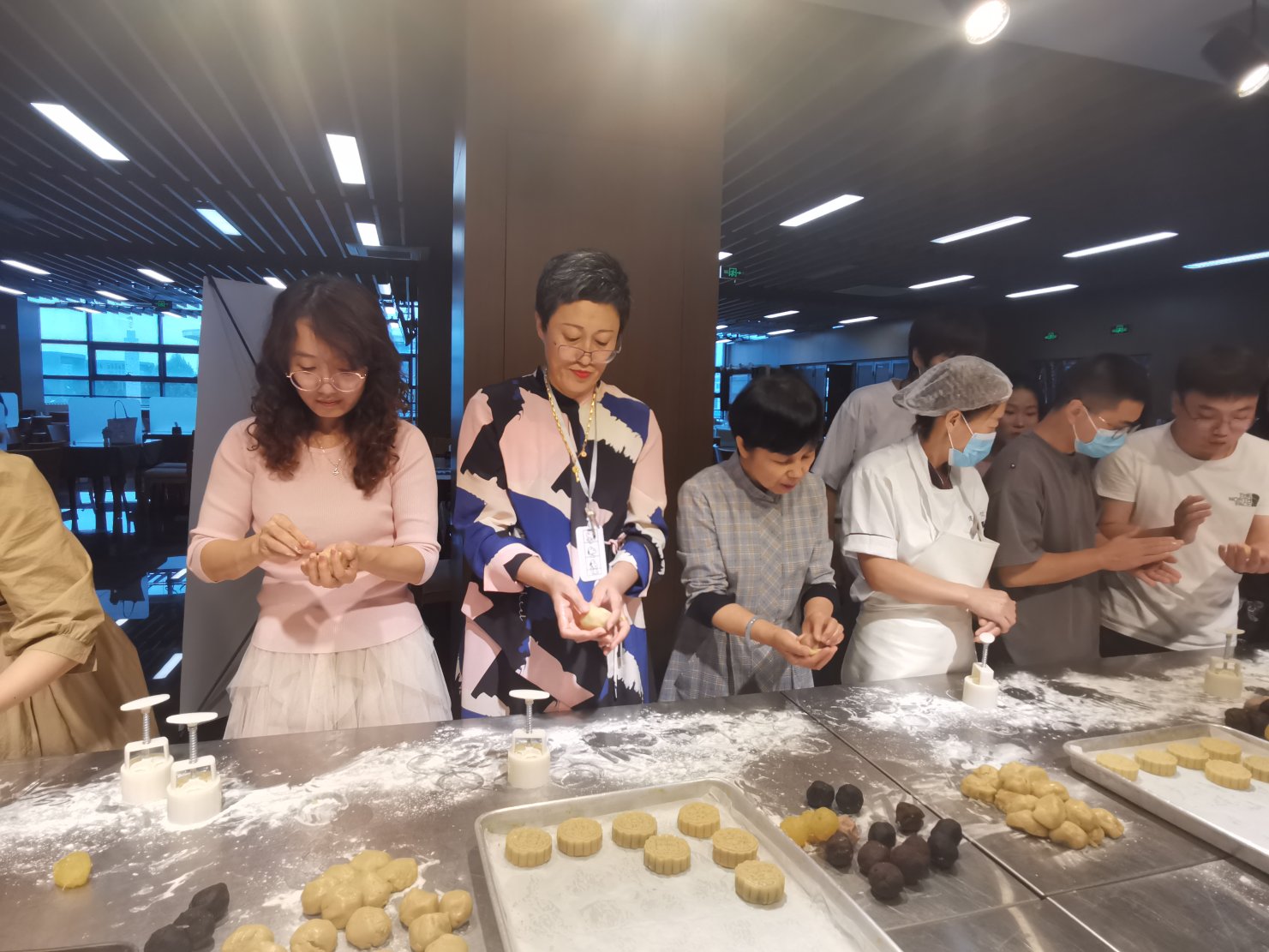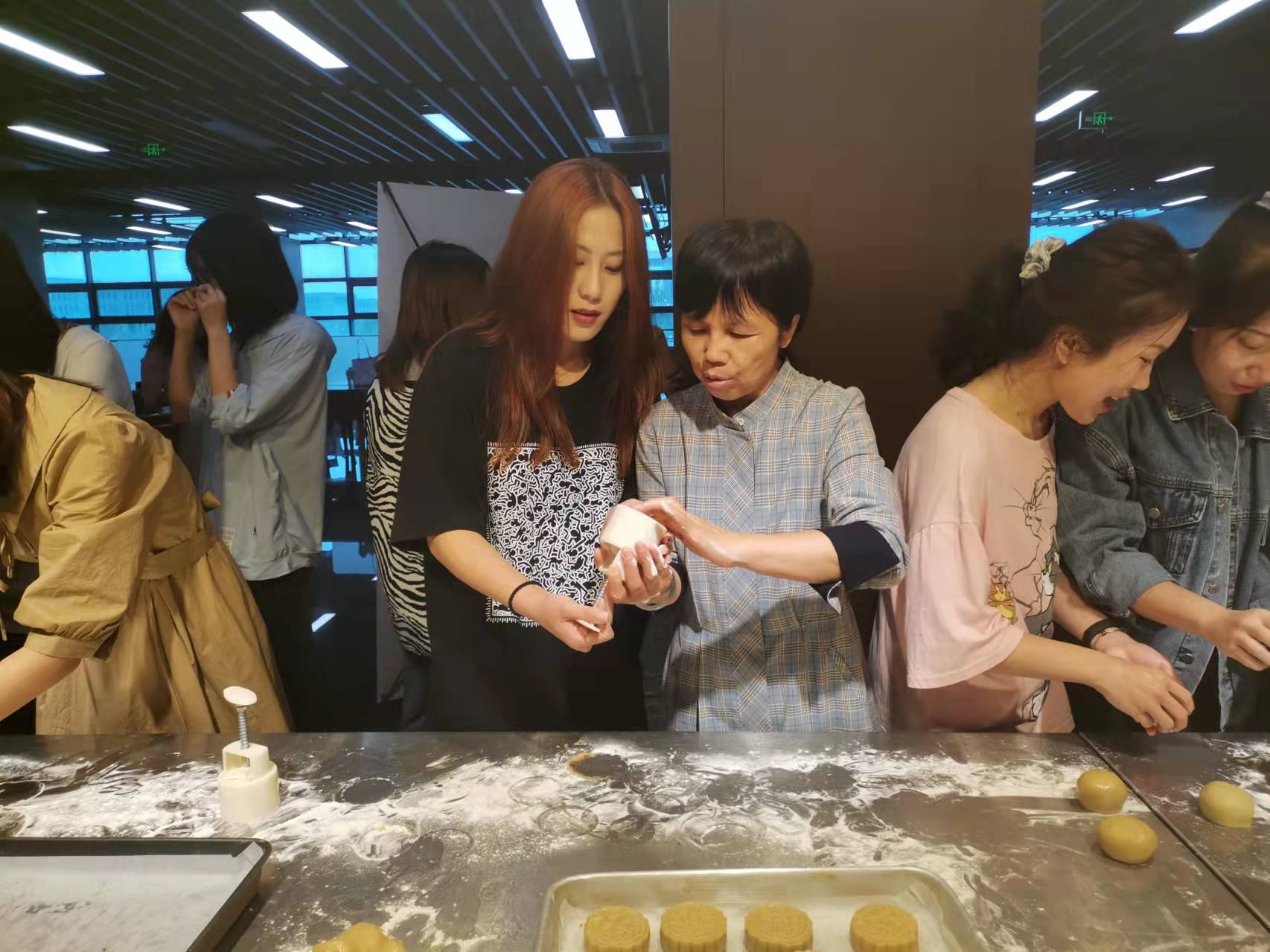 师生齐上阵,月饼手中现