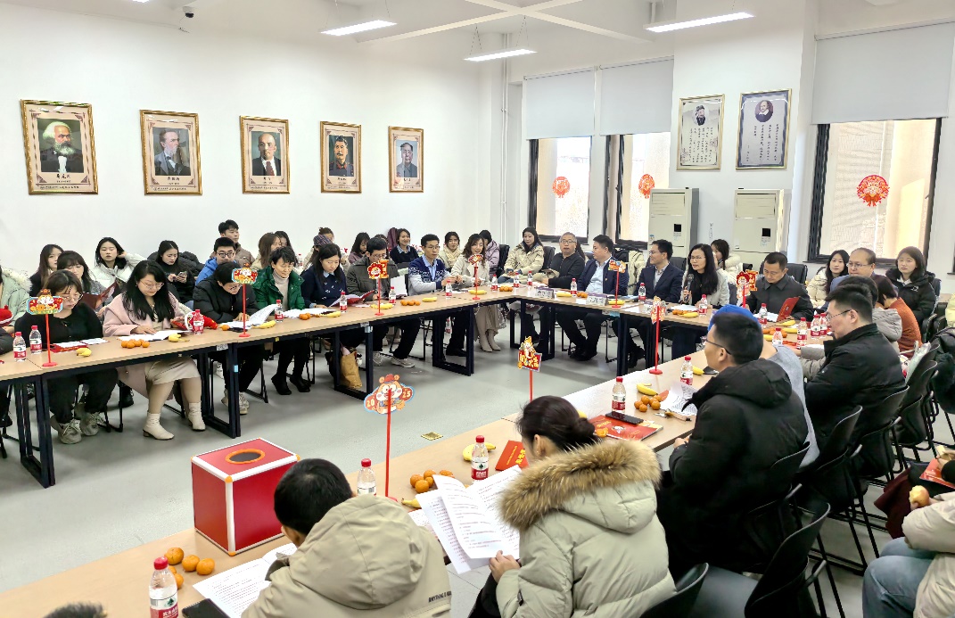 王逸鸣对学院一年来党建工作、教育教学、科学研究、学生工作等各方面取得的成绩表示肯定,对全院师生精诚团结、共同努力、齐心拼搏表示赞赏。王书记对学院未来工作提出三点意见,一是要把学习研究宣传习近平新时代中国特色社会主义思想作为根本任务,常抓不懈高质量党建工作,引领激发干事创业新活力。二是要充分挖掘学校优势资源,提升包括“人民城市”大思政课在内的所有思政课程群建设,创新锻造思政“金课”新样态。三是要推动马克思主义理论学科建设,打造优质人才生态,收获科研标志性新成果,推进学生工作走深走实,助力高水平特色型马院建设。王书记向全院师生表达了新年祝福。