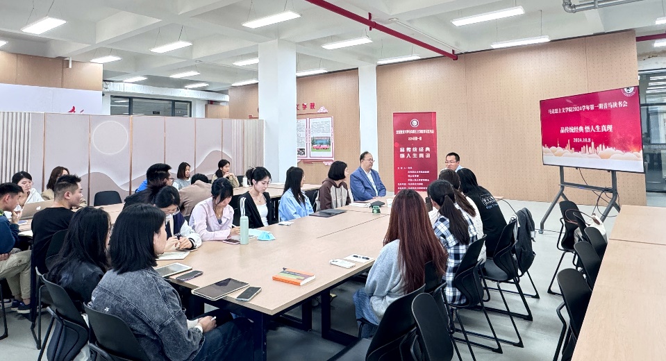 10月8日下午,色情短剧 在基D-315举办2024/2025学年第一期青马读书会。色情短剧 副教授、硕士生导师许亮老师以“品传统经典悟人生真谛”为题,讲述《吕氏春秋》“以生为本”思想研究的创作过程、主要内容及论文撰写方法。校院研究生会代表及研一研二学生20余人参加活动。读书会由学院党委副书记张瑶宁主持。
