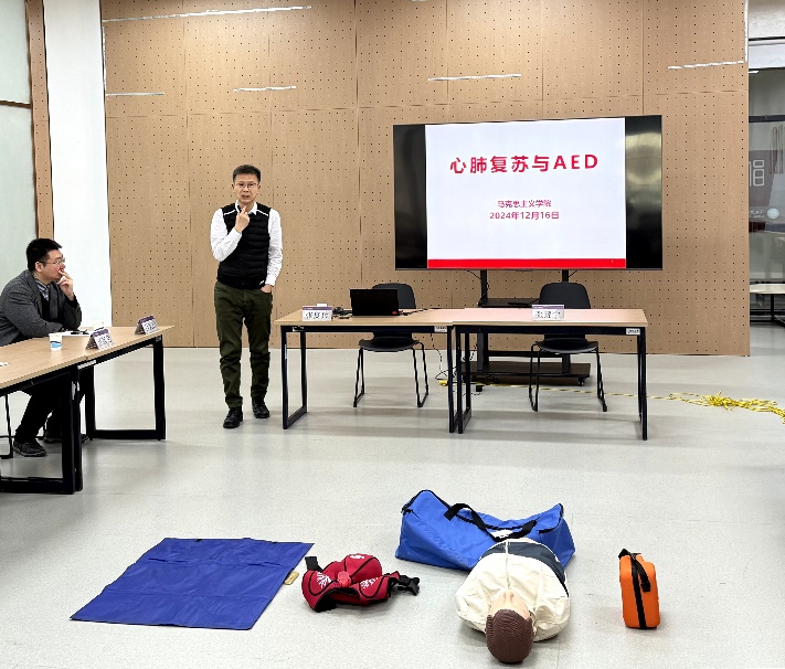 冯永龙以《高度重视意识形态工作,自觉夯实意识形态责任》为题,围绕学习贯彻习近平总书记关于意识形态工作的重要论述,讲解了意识形态工作在党的工作中的重要地位,并通过列举分析相关案例,向同学们提出强化意识形态责任明确要求。吕天石以《新时代巩固和发展社会主义意识形态》为题,讲述了要巩固马克思主义在意识形态领域的指导地位,不断增强意识形态领域主导权和话语权。任彦龙以《树立正确网络安全观,做新时代的中国青年》为题,围绕网络安全法律法规、网络安全意识、网络安全风险防范等三方面,讲解了网络安全重要性和安全防范措施。张复兵进行心肺复苏与自动体外除颤器(AED)使用现场教学,亲自演示并指导学生练习急救场地安全确认、胸外心脏按压、口对口人工呼吸及AED教学机使用等急救技能。