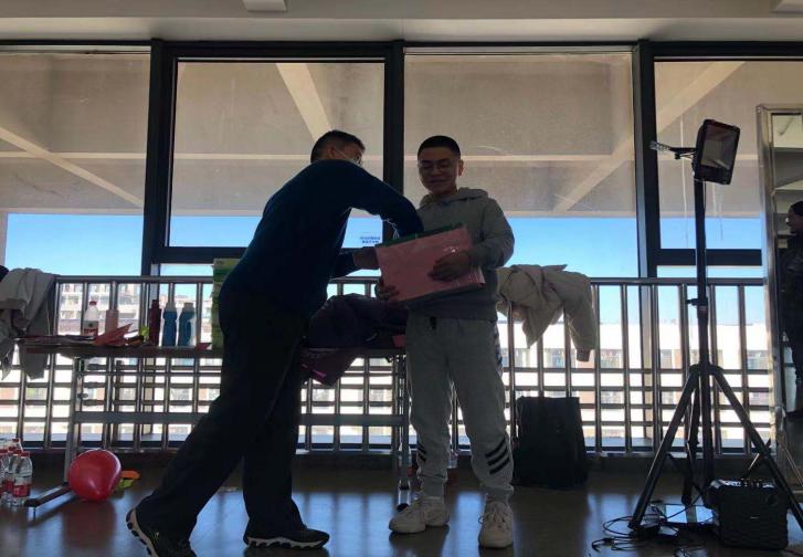活动尾声,汪琼枝作总结发言。她表示,第一次和同学们进行此类活动,非常高兴,希望大家通过活动增进情谊,并且肯定了本次活动的积极意义,鼓励同学们要好好学习,同时也要多多锻炼、强身健体。活动最后,王德中和汪琼枝一起为学生抽奖并颁发活动纪念品。