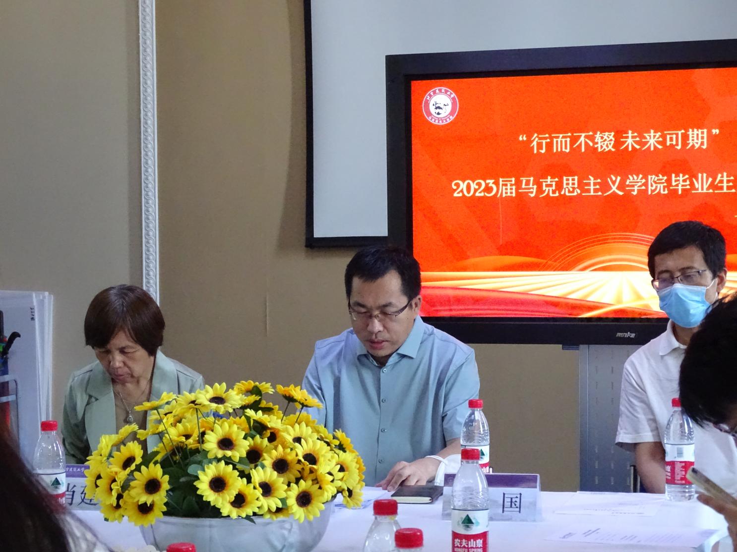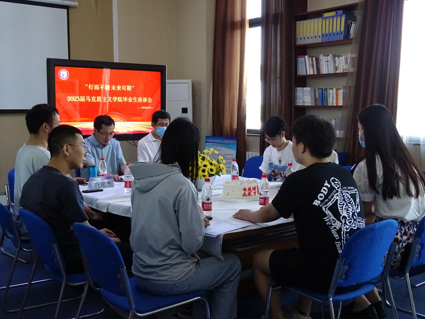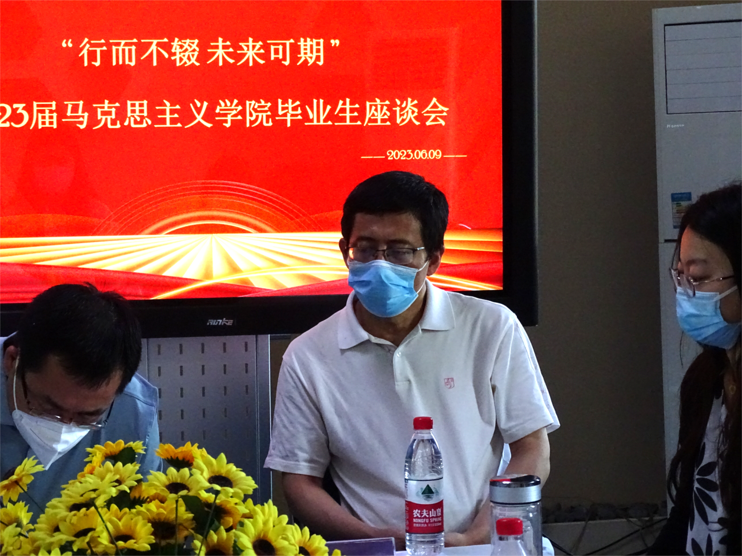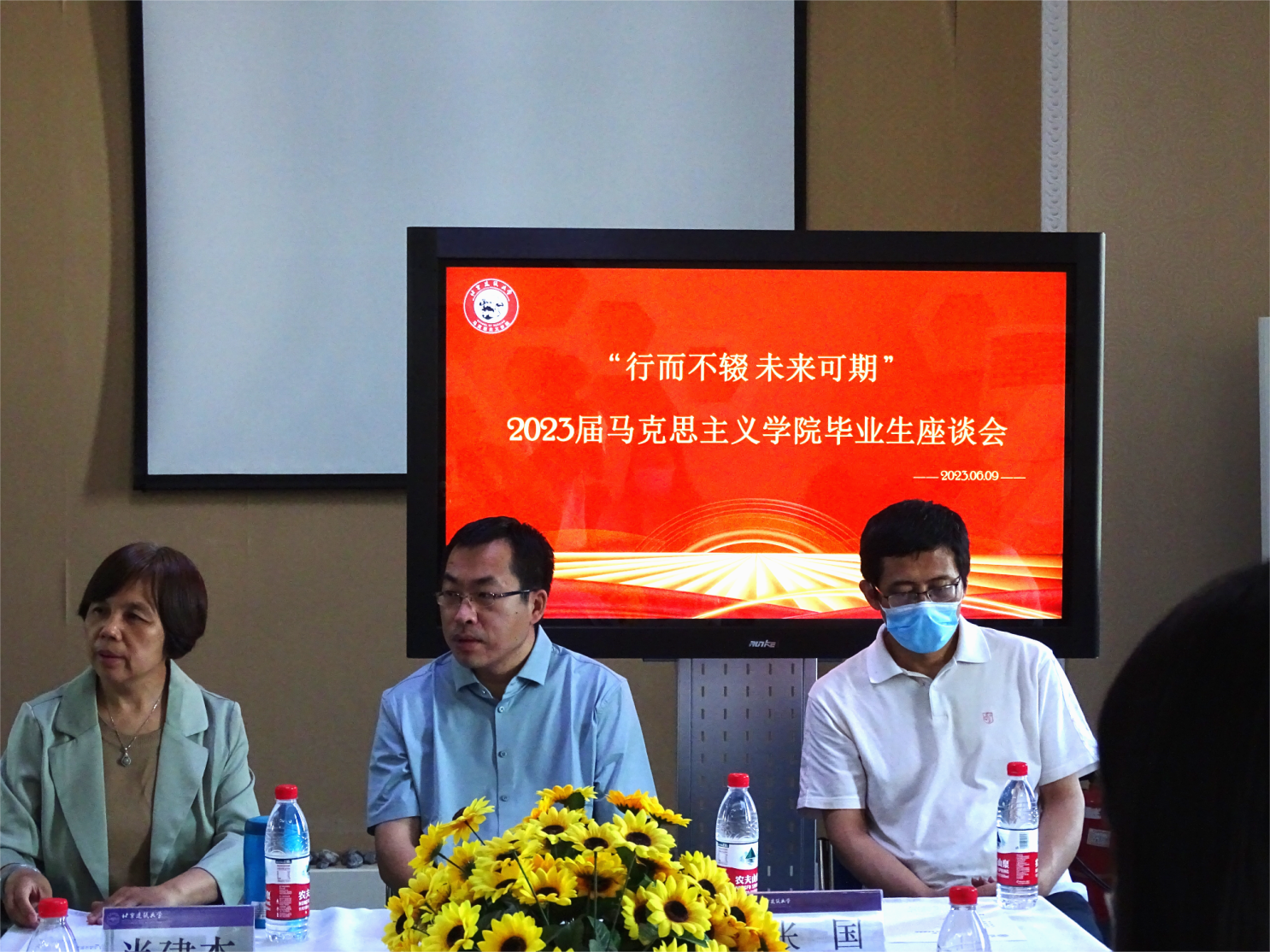 最后,许亮副书记做总结讲话。他首先感谢各位毕业生对学校和学院发展的关心,认为同学们的发言很有见地,有理有据。同时,他对同学们圆满完成学业、取得优异成绩表示祝贺,并深情寄语同学们,学院每个角落都留下了同学们青春奋斗的足迹,见证了大家的成长,马院始终是同学们温暖的精神家园,也将以大家为荣。最后,他衷心希望同学们青春向党,不负人民,胸怀家国,爱校荣校,立志做有理想、敢担当、能吃苦、肯奋斗的新时代好青年,让青春在全面建设社会主义现代化国家的火热实践中绽放绚丽之花,在新征程上用青春的热血和拼搏的勇气书写奋斗新篇章。