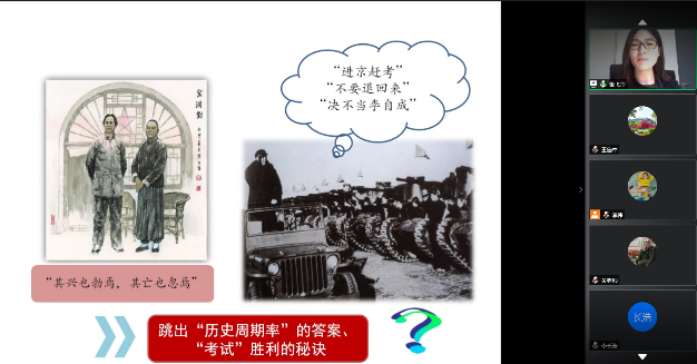 本次思政课程评选共有郭晓东、张溢木、张飞雪、金焕玲、张守连等5位参加,每位教师分别以腾讯会议共享屏幕的形式进行15分钟的教学演示,以扎实的理论功底、精心设计的教学方案、精心选择的教学案例和多媒体等教学手段,展现了新时代思政课教师的教学风采。