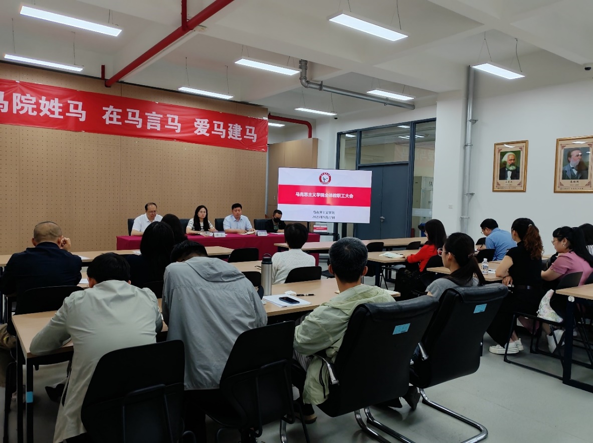 张守连对学院整体工作进行总结并做出全面部署。指出本学期学院各项工作取得积极成效,学生培养工作成效显著,研究生招生工作顺利结束,科研项目申报数量有了显著提升。他指出,下步工作一要进一步加强思政课教学,加强课堂管理,规范日常教学用词用语,开展思政精品课程和思政微课建设,二要进一步开展有组织科研,积极组织开展北社科等课题申报工作;三要加强数字马院建设,积极推动建成学校数字思政实验基地;四要进一步加强意识形态工作,全体思政课教师要严守意识形态主阵地,发挥思政课教学主力军作用;五要落实学校安全稳定工作要求,安全顺利完成期末和假期各项工作。