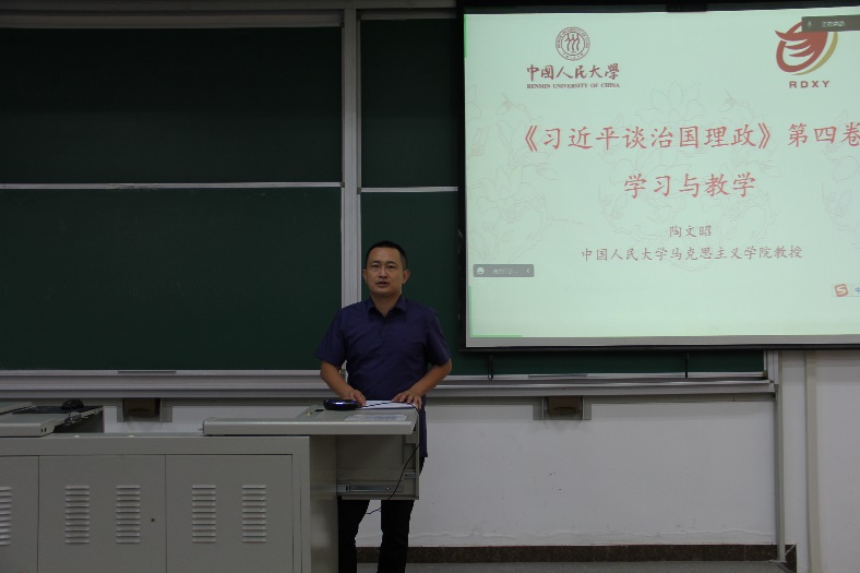 陶教授首先对《习近平谈治国理政》(第四卷)的内容做了总体介绍。随后,围绕如何教与如何学两个主题,从二十一个方面详细剖析了第四卷的核心要义和学习方法。