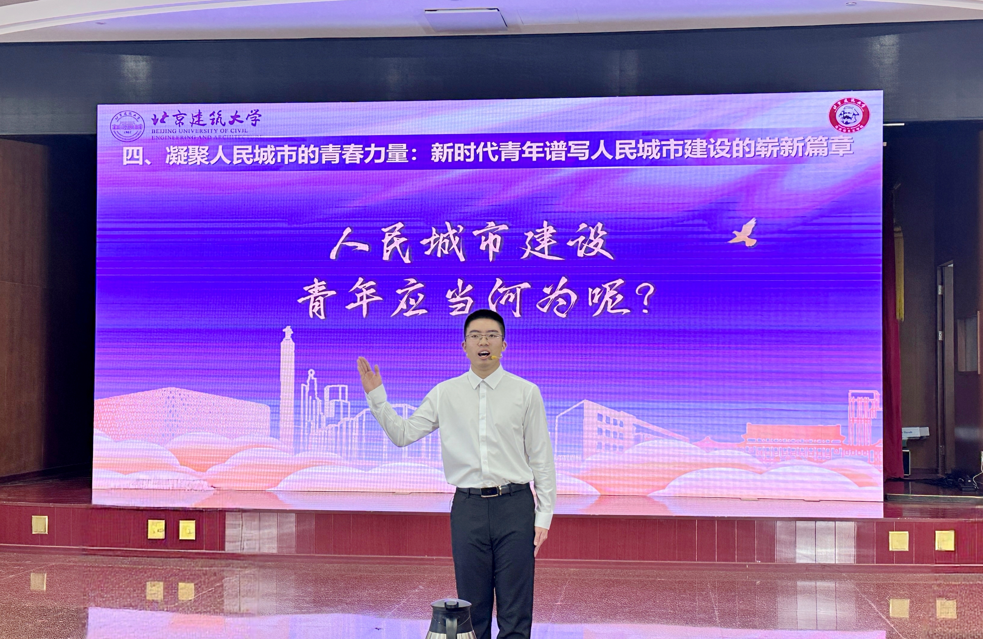 宣讲围绕“以青春之我筑人民之城”主题,以“理论宣讲+青年故事+原创诗朗诵”形式进行展演,努力打造北建大特色品牌宣讲故事。第一篇章理论宣讲,系统解读习近平总书记关于人民城市重要论述的科学内涵,阐述为何要建人民城市、怎样建设人民城市的核心要义。第二篇章青年故事,讲述北建大青年作为人民城市理论的传播者、人民城市文脉的守护者、人民城市现代化的建设者、人民城市扎根的践行者,投身人民城市建设的责任与担当。第三篇章文艺展示,以诗朗诵的形式将北建大人从治理一条沟到翻新一座桥,从修葺一道门到设计一栋楼,从修缮紫禁城到建设人民城的故事娓娓道来。三个篇章逻辑清晰、内容连贯、语言生动,充分展现出北建大青年学子在人民城市建设中的青春作为。