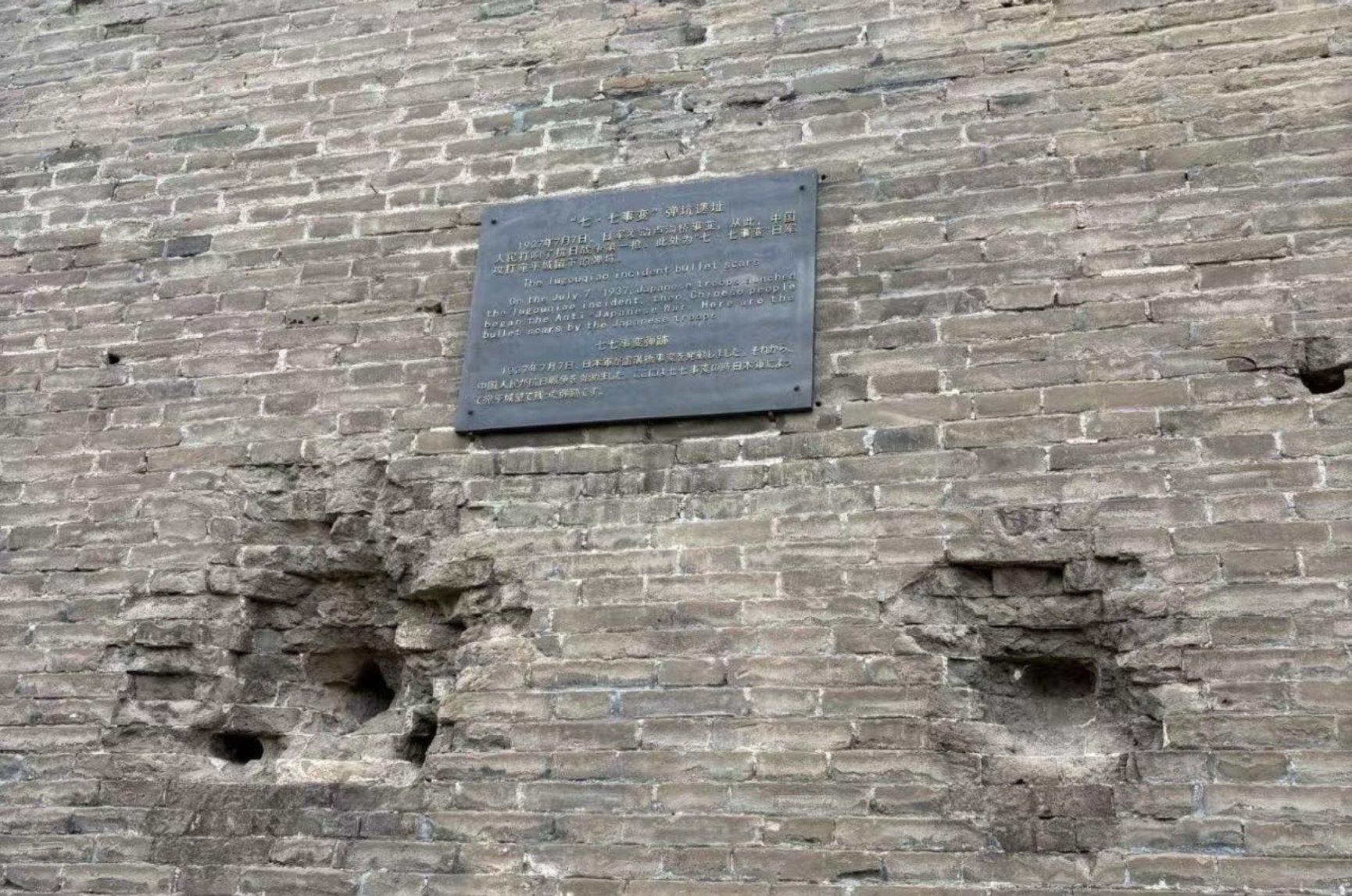 站在宛平城的城楼下,抚摸着那些被岁月打磨得光滑却依旧带着弹痕的砖石,队员们的指尖仿佛触碰到了 88 年前那个风雨如晦的清晨。如今,城墙上深浅不一的弹孔依然清晰可辨,它们像一个个永不愈合的伤疤,无声地诉说着那段山河破碎、生灵涂炭的历史。