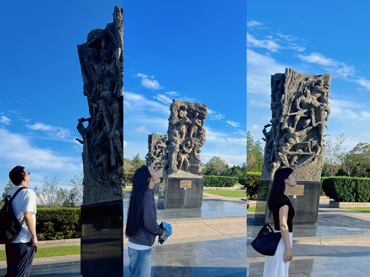 实践中,队员们创新学习形式:在中国人民抗日战争纪念雕塑园,围绕《铜墙铁壁》《共赴国难》等群雕开展“沉浸式研学”,讨论艺术作品如何具象化表达抗战精神;通过短视频记录遗址细节,用Vlog分享研学感悟,将“行走的课堂”搬到线上,让更多同龄人感受红色文化的力量。